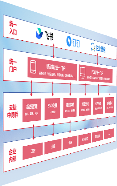 对协作平台提供支持服务,,支持企业应用与协作平台对接,,,,包含组织同步、、消息集成、、、、待办集成等。。。。支持目前主流的协作平台:钉钉、、、、企微和飞书。。。。